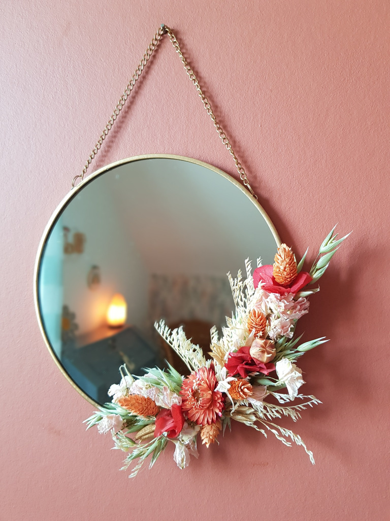 Une après-midi conviviale pour décorer un miroir avec des fleurs séchées?