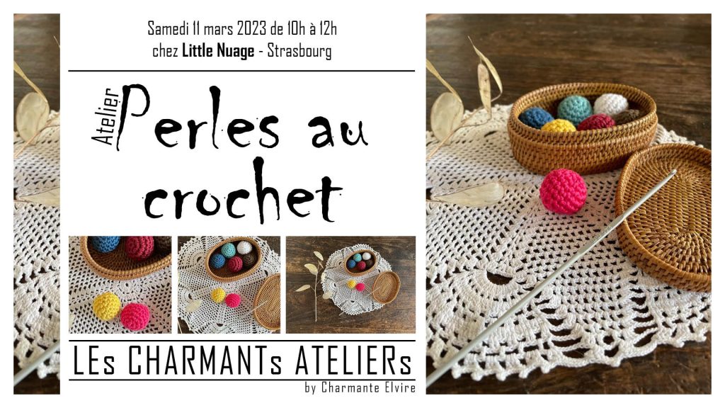 S’inspirer de l’ambiance cosy et chaleureuse de la jolie boutique Little nuage pour se détendre et crocheter des perles et en faire de jolies décorations (guirlande aérienne, collier, pampiles, etc) et ainsi envisager pour la suite de nombreuses créations poétiques d’amigurumi, de paniers, de fleurs, de sacs, de granny…