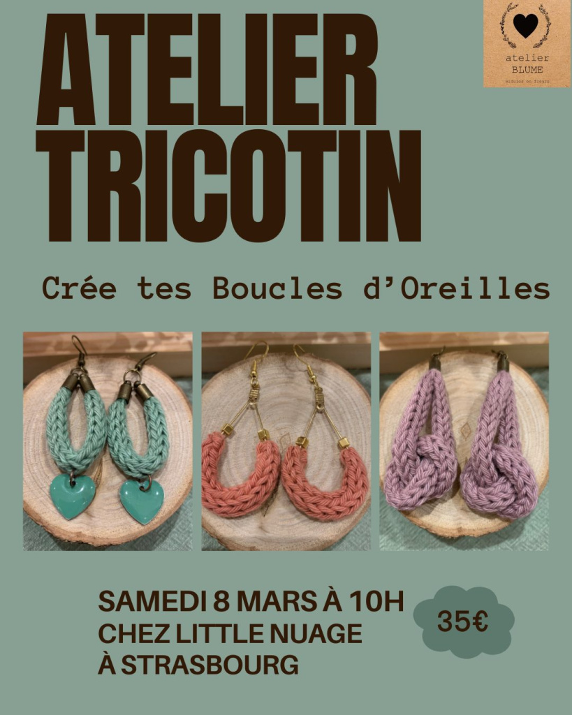 Places limitées, réservez vite la vôtre ! Billeterie en ligne ici:https://my.weezevent.com/cree-tes-boucles-doreilles-en-tricotin