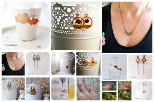 J’ai pris plaisir à constituer une palette automnale avec les bijoux que vous pouvez retrouver dans ma boutique en ligne. Camel, moutarde, chataîgne, vert mousse, rouge éclatant me font invariablement penser aux teintes dont se pare la forêt en ce mois d’octobre.