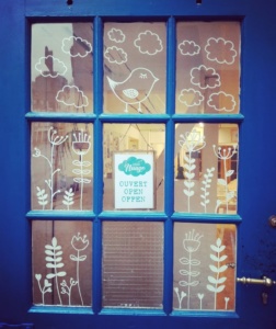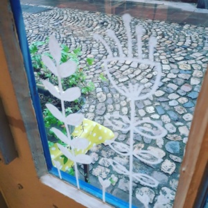 La décoration des vitres au feutre-craie est un grand classique chez nous depuis longtemps et les enfants y participent avec plaisir ( c’est d’ailleurs une chouette idée d’occupation pour enfants confinés, je dis ça, je dis rien…) mais une autre idée a germé dans mon esprit récemment…