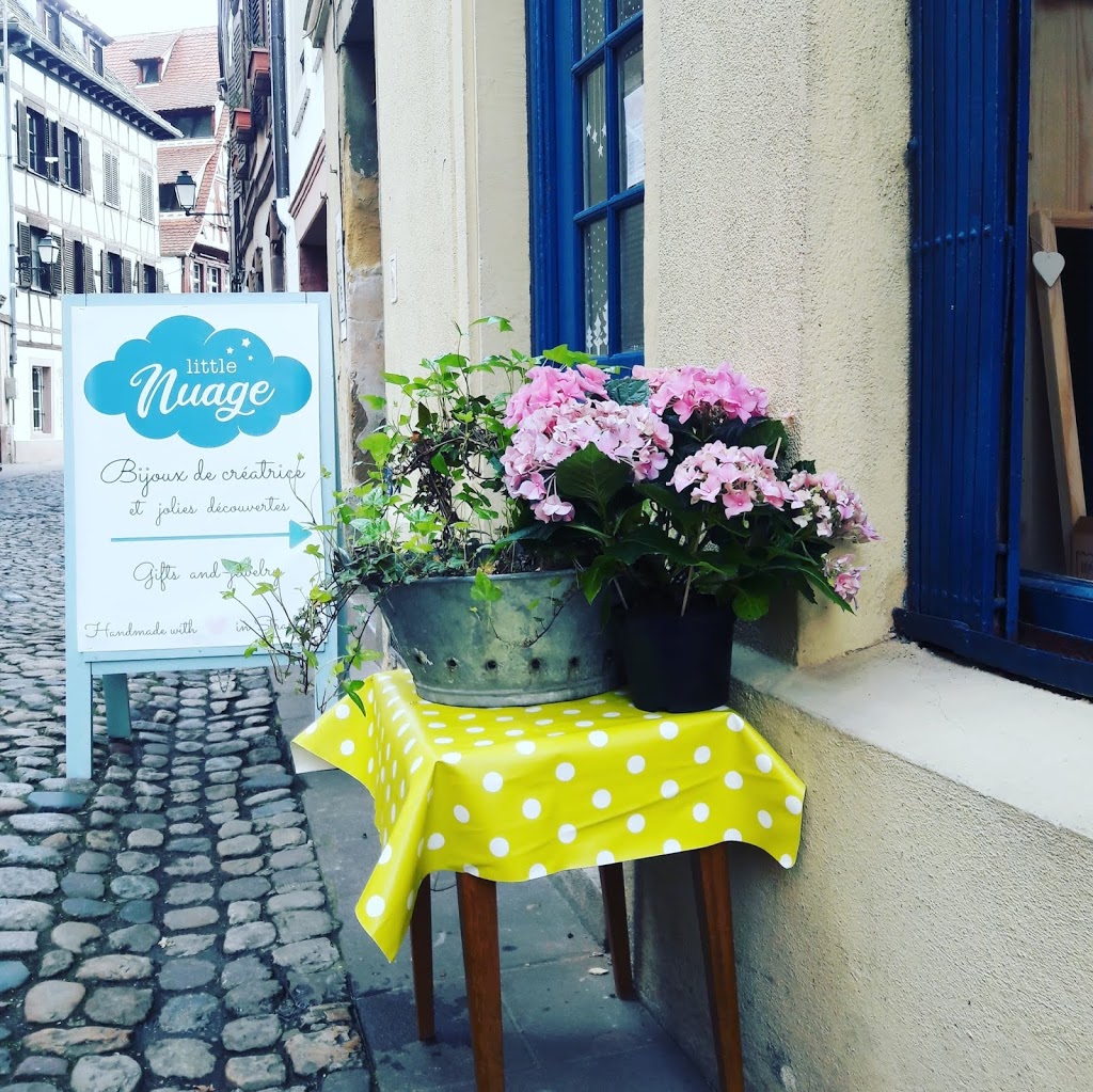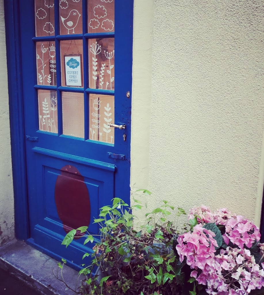Et hop! Un petit coin coloré devant la boutique qui me réjouit beaucoup!