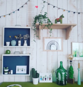 La Dame Jeanne est installée dans mon coin Green au milieu de nos souvenirs de voyage et de nos coups de coeur créatifs!