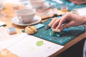Atelier gravure de tampons pour les 13 ans de Clara